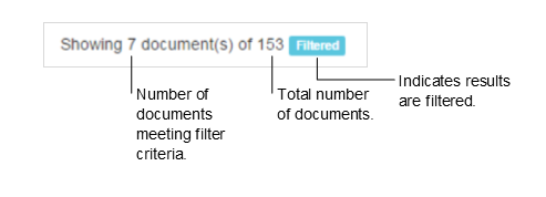 • The number of documents that meet the criteria, and the total number of documents, are displayed alongside a blue box indicating the results are filtered.