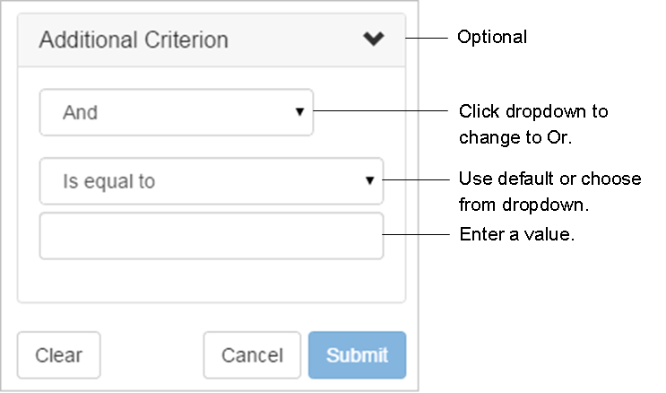 - If you want to apply And/Or logic to the filter, select Additional Criterion. Use the elements in the dialog box to further configure the filter.