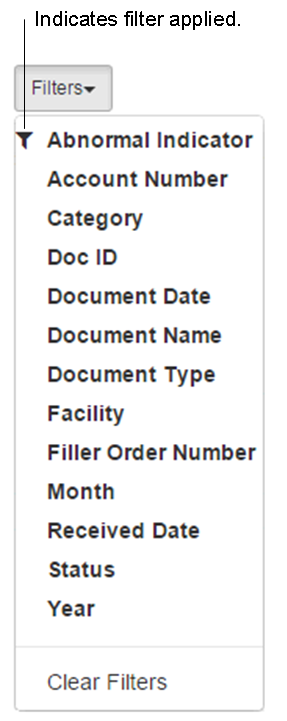 Use filters to speed up your search for patient documents. You can apply a filter when the document grid is fully collapsed, or at any expansion level.