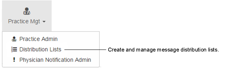 From the menu bar, select Practice Mgt > Distribution Lists.